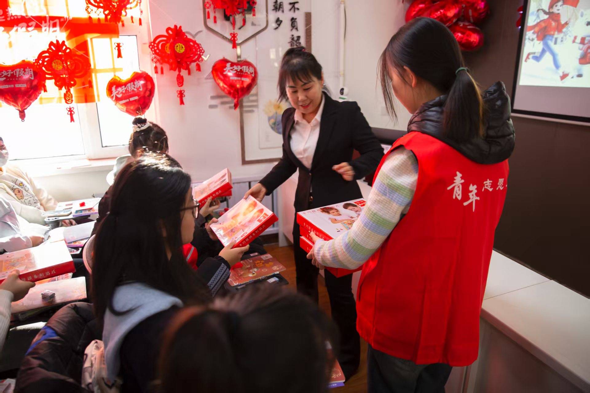 在课业辅导之外,丰富多彩的兴趣课程成为课堂的亮点:非遗传承人手把手传授剪纸、布贴画技艺,让孩子们在指尖流转中感受传统文化的魅力;科普志愿者带来趣味实验,用简单的器材演示浮力、光影等科学原理,点燃孩子们探索世界的好奇心;体育专业志愿者带领孩子们开展跳绳、足球、趣味运动会等活动,在奔跑跳跃中强健体魄;文学爱好者组织经典诵读、故事创作活动,让孩子们在文字世界中开阔眼界。此外,课堂还特别设置了交通安全、防溺水、防诈骗等安全教育模块,通过情景模拟、案例讲解等方式,为孩子们筑牢安全防护网 。 志愿者们还精心准备了爱心礼包,涵盖书包、文具、书籍、帽子,围巾等物资,同时搭建“云端桥梁”,组织儿童线上共读等活动,让地域的距离化作心灵的纽带,让儿童感受到更广阔世界的温暖与关怀。