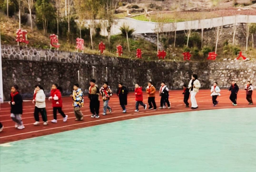 高桥乡地处巴东、兴山、秭归三县交界,1928年中共巴兴归县委在此建立后,革命星火迅速燎原,贺家坪、官田岭的每一寸土地都浸染着共产党人的鲜血。1930年农历八月十八,震惊鄂西的“箩稗子”惨案在此上演,邓维楚率领的反动派以“箩稗子”为名,将下湾区苏维埃政府副主席陈大斌、妇女主席曹友娣等17名共产党员押至官田岭天坑边,用铡刀、大顺刀残忍杀害,陈大斌高呼“砍头不要紧,只要主义真”,曹友娣怒斥刽子手后慷慨就义,后续更有百余位革命干部倒在黎明前的血泊中。运动场标语中蕴含的“坚定信念”,正是对当年共产党人面对挖心肝下酒等惨无人道的刽子手仍昂首高呼“中国共产党万岁”的钢铁意志,最真切有力的当代诠释。 2021年9月,这所创办于1958年的乡村学校,被正式命名为“中国工农红军湖北兴山高桥红军小学”,成为兴山县唯一以“红军”命名的学校。“红色耀中华 精神传后人”的标语,与学校“赓续红色基因、培养老区新人”的办学理念同频共振,如同接力传递的历史信物,将20世纪30年代的革命理想与新时代教育使命紧密相连。运动场四周悬挂的领袖像、十大元帅事迹牌,与乡境内修缮完好的“箩稗子”惨案遗址、贺龙战壕遗迹等20多处革命遗址相互印证,让标语有了具体可感的历史参照与精神依托。当学生们在运动场上奔跑跳跃,脚下正是当年红军游击队员浴血奋战的热土——“团结拼搏”呼应着巴兴归三县人民协同抗敌的历史,“超越自我”则延续了革命年代“以信念战胜困境”的精神内核,寄托着老区人民对下一代的殷切期望。 在17,424平方米的校园中,运动场占据核心位置,经过2020至2023年间近200万元的改造提升,这里已从单纯的体育场地,升级为承载红色教育功能的特色文化空间。在宿舍楼堡坎前方悬挂着红色高桥、红军小学、巴兴归革命烈士纪念馆等红色文化简介及雨来、黄继光、海娃等英雄人物,与学校“每天在校一小时体育活动”的硬性要求有机结合,催生出独具特色的“红色体育”教育模式。 大课间里,全体师生在全员参与的体育训练中融入了革命故事场景,让“团结拼搏”有了鲜活载体;就寝时分,“蒲公英”广播平台循环播放红色故事,浸润学子心灵;集体活动中,红色歌曲激昂回荡,让学生在旋律中感悟红军“四渡赤水”的协同智慧;田径赛场上,少年们奋力冲刺,将“超越自我”的奋斗理念转化为实际行动。这种融合是学校精心设计的“沉浸式红色育人体系”的重要组成部分,正如2023年落成的200平方米红色文化小广场,与运动场紧密相邻,既为家长提供休息空间,更成为“露天课堂”,让接送孩子的过程也成为红色文化熏陶的契机,真正实现“一景一故事,一步一熏陶”。学校每年举办的运动会更专设红色主题环节,让学生在竞技比拼中深化对革命精神的理解与传承,培养“知书识礼、健康向上”人才。