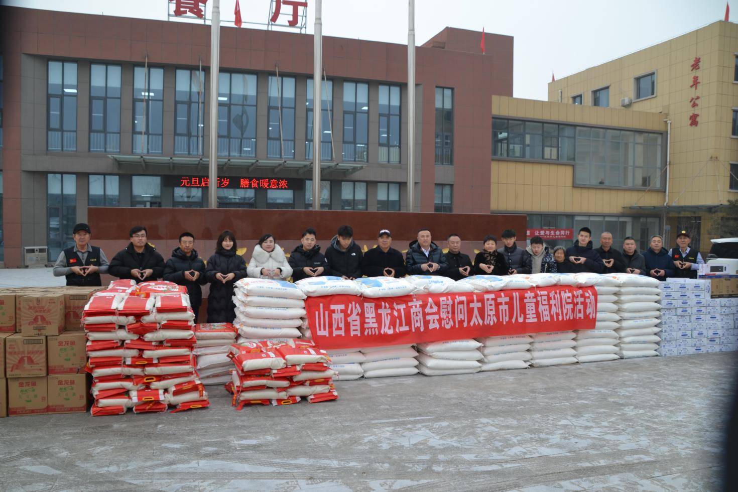 山西省黑龙江商会名誉会长陈晓伟及家属向太原市儿童福利院捐赠大米164袋、白面164袋、食用油220桶、电脑2台共计价值八万余元慰问物资。 山西省黑龙江商会秘书长陈建新,代表商会向指出:本次捐赠活动是商会新年新起点,其意义和价值体现在多个层面,不仅直接改善受助儿童的生活条件,还对社会产生深远的影响,推动社会公平与稳定,弘扬社会文化正能量。
