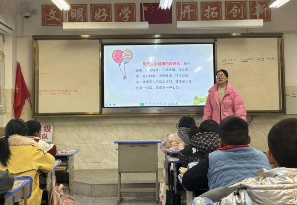 班会课堂上,各班级立足儿童认知规律,创新采用“网络知识+趣味载体”的教学模式,通过讲故事、PPT演示、AI课件展示等生动活泼的形式,将安全教育知识融入互动环节,让学生在轻松氛围中收获知识。五、六年级班主任聚焦校园生活实际场景,围绕常见心理问题识别、自我认同困惑疏导、心理自护策略运用等内容展开讲解,引导学生结合自身经历分享感悟,学会正视成长中的烦恼。三、四年级班主任从“什么是心理健康”切入,系统讲解心理健康的具体表现,梳理小学生常见心理问题的应对方法,教会学生掌握自我控制、自我调节的技巧,助力学生培育阳光心态。一、二年级班主任则以提问、交流、座谈为主要形式,深入了解学生心理状态,着重指导学生在学习生活中遇到困难时,如何与家长、老师、同学有效沟通,传递“尊重理解、知错就改、主动助人”的交往理念。