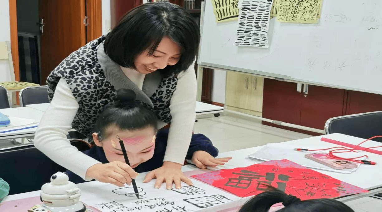 社区里新搬来的住户张阿姨,一直苦于孩子没有玩伴。这堂课成了她孙子结识朋友的场所——他们因为争论“悬针竖”和“垂露竖”哪个更好看而“吵”了起来,又因为一起合作完成一张作品而和好。这间教室里除了点滴墨香,守护着的更是一份份最珍贵的情谊。