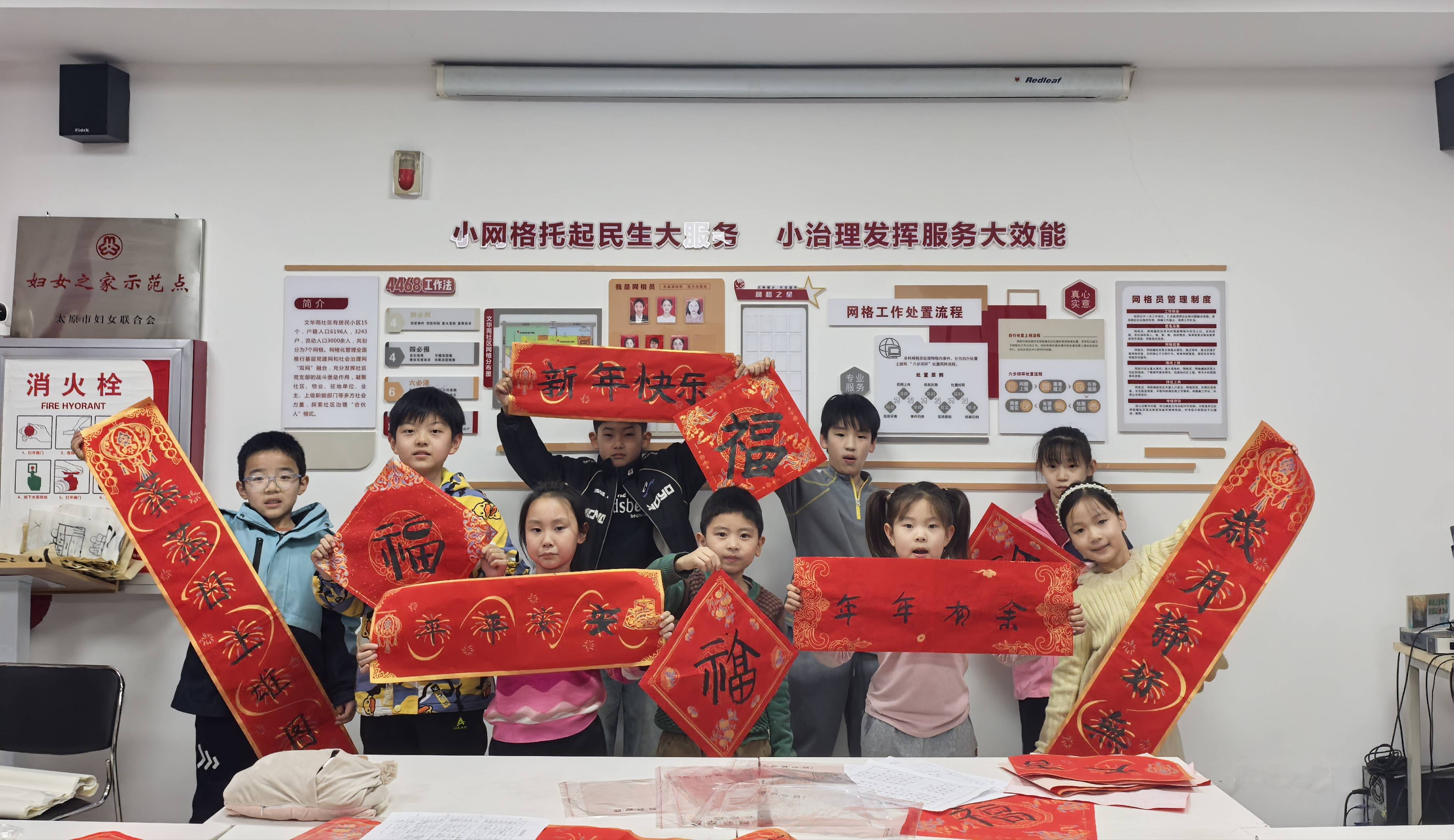 笔尖下的美好 在最后一节课程中,孩子们将这几天所学转化成为了最温暖的行动,为社区里的独居老人书写了多种充满童趣的“福”字。当他们将作品送到老爷爷手里时那一张张笑容洋溢的可爱脸庞是幼小的心灵中“美”的种子在悄然生根发芽。