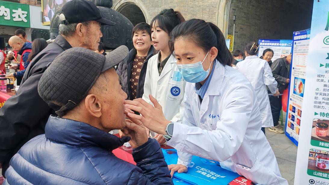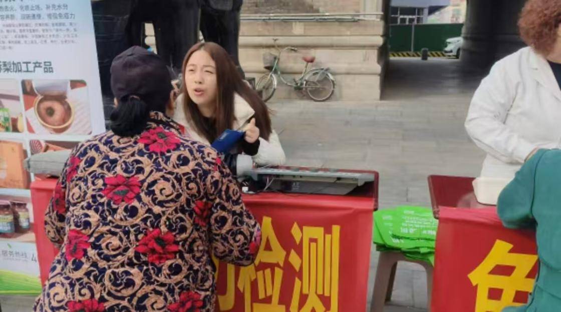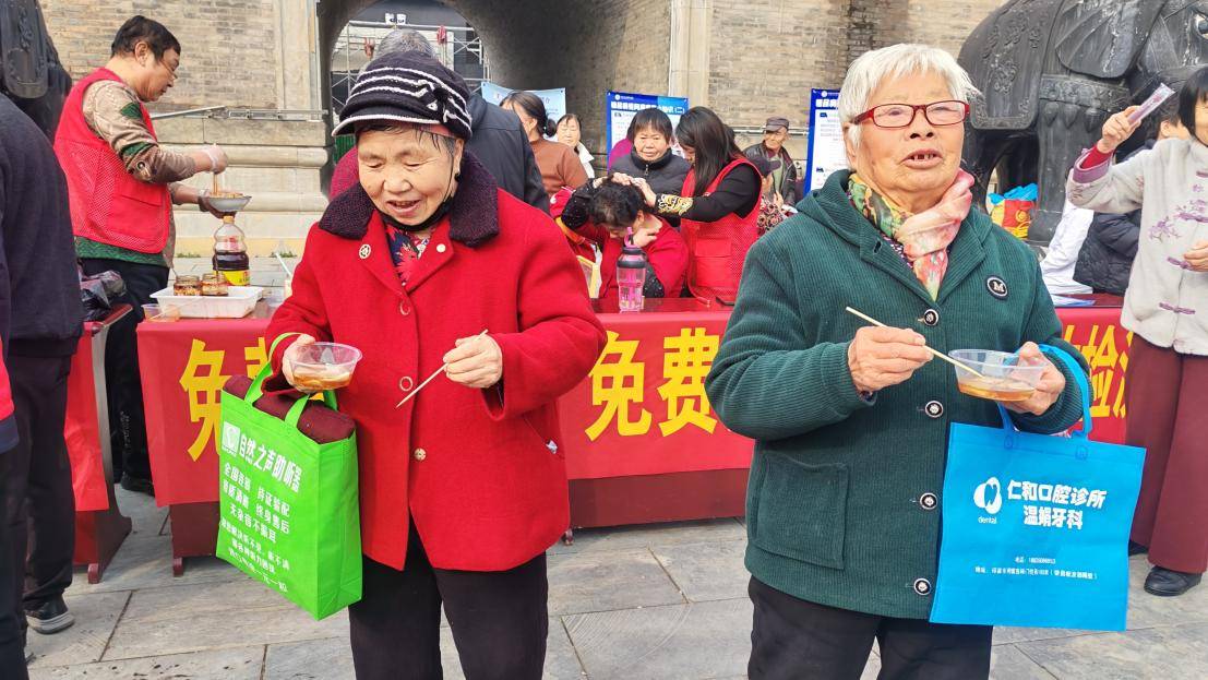 活动现场,志愿者们向老年群众宣传反诈防骗,为老人们爱心义剪,东观卫生室为老人们量血压、测体重,尚巾眼科为老人们检测视力,仁和口腔为老人们检查牙齿,自然之声助听器为老人们检测听力,腾达生态园为老人们熬喝梨汤,润生灌肠免费让老人们品尝灌肠,艾纳菲头疗为老人们按摩,惠儿水暖让老人们智能马桶体验,非遗传承老师让老人们体验剪纸,吸引了众多老年人的参与。
