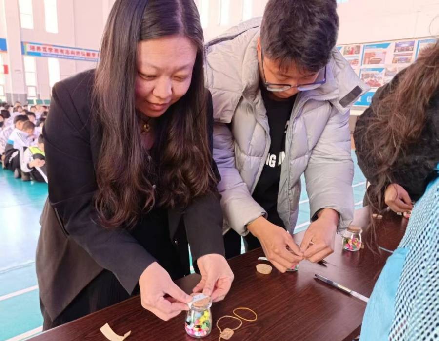 结束后,获胜小组分享经验:“不是靠某个人快,而是我们每个人都知道自己该做什么”,让“团队协作不是‘一个人做到最好’,而是‘所有人配合到最好’”的理念深入人心。 告别小学的稚嫩,迎接初中的未知,每个新生心中都藏着对未来的期待。 心愿书写环节为学生提供一个专属的“心愿承载空间”,让憧憬落地,让目标清晰。 将全班的“心愿之星”统一放入班级专属的“心愿时光瓶”中,由班主任和学生代表共同贴上封条,盒身会标注好所在班级。时光盒将由学校德育处统一保管,计划在初三毕业季开启,让大家回望初心、验证成长。