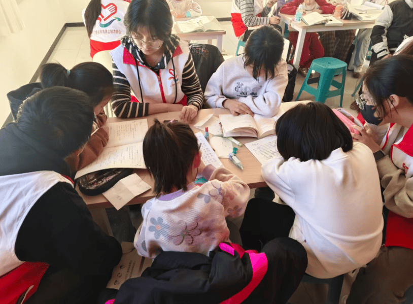 "小明,这道数学题我们换个思路好不好?"扎着马尾辫的大学生志愿者李婷俯下身,指着作业本上的一道应用题轻声说道。她来自北京师范大学,是心理学专业的大二学生。小明咬着铅笔头,眉头紧锁,这是今天第五次尝试解这道题了。李婷没有直接告诉他答案,而是拿出一叠彩色的计数棒,"你看,我们把题目里的苹果想象成这些小棒..."渐渐地,小明的眼睛亮了起来,他兴奋地喊道:"我知道了!原来要这样分!"周围的孩子们也被吸引过来,七嘴八舌地讨论起各自的解题方法。这样的场景每天都在这个温暖的阅读空间里上演着。 来自全国各地高校的二十多名乌兰察布籍大学生,这个寒假他们有一个共同的选择——放弃舒适的假期生活,回到家乡当志愿者。他们穿着鲜红的志愿者马甲,化身为孩子们的"大哥哥大姐姐"。除了课业辅导,这些大学生们还精心设计了丰富多彩的趣味课堂。周三下午的手工课上,来自南京艺术学院的王艺带着孩子们用废旧纸箱制作小房子;周五的阅读分享会上,北京外国语大学的张悦声情并茂地讲述着《小王子》的故事;每周一次的安全教育课上,警校生刘强用情景模拟的方式教孩子们如何应对陌生人搭讪。