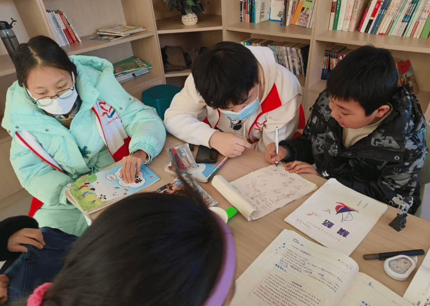 冬日暖阳透过明亮的玻璃窗洒进"书香北财"阅读空间,在地板上投下斑驳的光影。空气中飘散着淡淡的书香和热可可的香甜气息,十几个孩子围坐在原木色的大桌子旁,时而低头认真写着作业,时而抬头向身旁的"红马甲"投去求助的目光。这里是乌兰察布市先锋志愿者协会联合北财街社区举办的"情暖家乡 助力成长"寒假七彩假期课堂,在这个寒冷的冬天,正上演着最温暖的故事。
