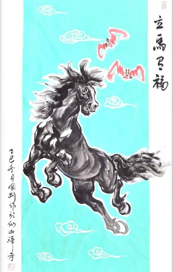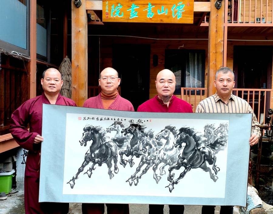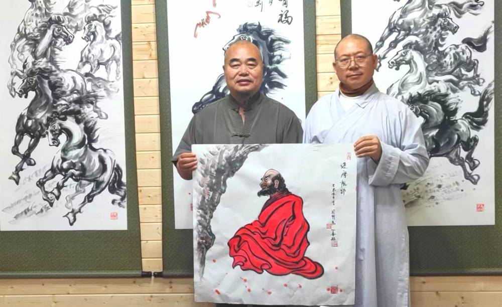 据了解,画家潘国刚与浙江临海仙山禅寺释心善大和尚的交往,得益于一段奇缘。他偶然从老友释鸿福禅师口中得知,释心善大和尚是一个大佛医,自幼跟随名师学满中医13科,出家后慈悲为为怀,以佛法医治人心,以中医医治人身疾病,几十年来治愈了无数的患者。 释心善大和尚与潘国刚老师同为属马之人,由于因缘和合俩人接下了不解之缘。