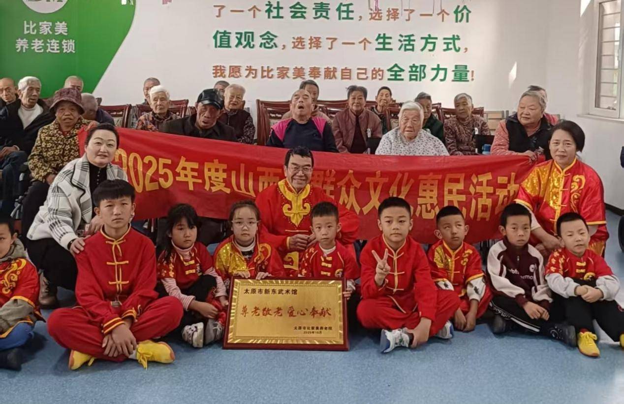 公益在线太原讯(记录者 范继东)2025年10月25日,九九重阳节即将来临,非遗岳氏意拳代表性传承人(新东武术馆)孟荣成馆长率领新东武术馆的徒弟们前往杏花岭区比家美养老院进行公益慰问演出。