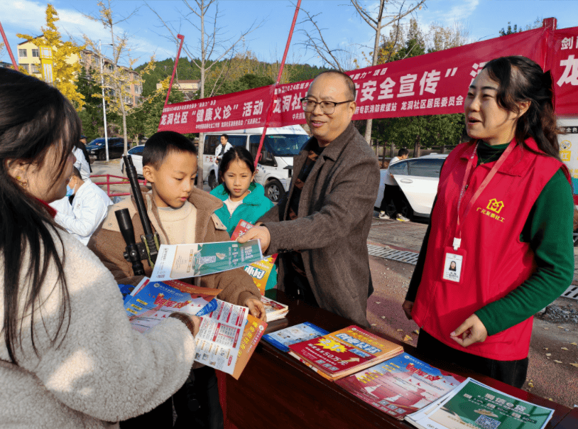 与舞台上的热闹交相辉映,广场侧边的便民服务区同样温情满满。健康义诊区里,剑阁县第三人民医院牵头联动广元中舰口腔医院、广元万江眼科医院的医护团队,耐心为居民提供血压血糖测量、眼科检查、口腔诊疗等服务,结合检查结果给予个性化健康指导,将专业医疗关怀送到群众“家门口”;消防、防诈及法律咨询台前,广元农村商业银行剑阁白龙支行、剑阁县公安局白龙派出所、当地消防救援站的工作人员通过发放宣传资料、现场答疑、案例讲解等方式,向居民普及电信网络诈骗防范、消防安全常识及相关法律法规,为社区居民的生命财产安全与合法权益保驾护航,贴心服务获得大家一致好评。