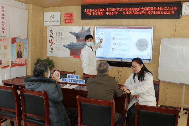 公益在线太原讯(记录者 范继东)为提升居民冬季自我保健能力,弘扬中医养生文化,2025年12月24日,太原市小店区平阳路街道滨东社区新时代文明实践站联合太原国翠堂中医综合诊所,共同举办“冬季中医养生与冻伤防护”健康科普活动,为社区居民带来一场实用、暖心的健康知识讲座。活动中,国翠堂药瑾医师结合北方冬季气候特点,系统讲解了中医冬季养生的基本原则,包括早卧晚起、保暖防寒、饮食温补等生活公益指导。