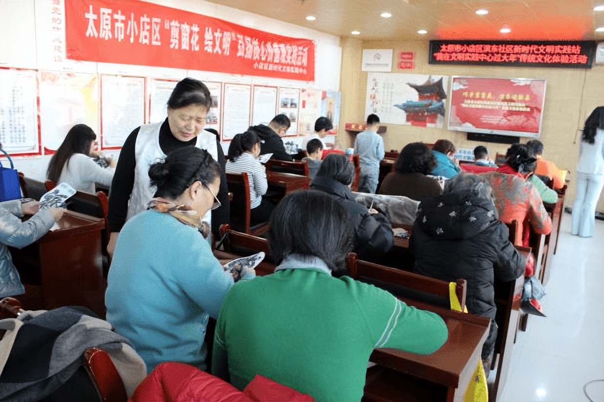 活动现场,小店区新时代文明实践中心特邀的任老师为居民带来了一堂生动的窗花剪纸课。任老师讲解细致,从剪纸的历史渊源、文化内涵到基本技巧,一步步引导居民了解这项传统艺术的魅力。现场准备了剪刀、窗花模板和相框等物料,方便居民动手实践。