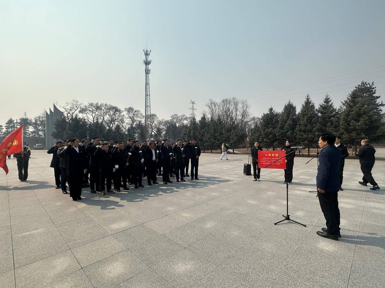 扫墓结束后,党员代表带领全体人员面向党旗举起右手,重温入党誓词。铿锵有力的誓言在陵园上空回荡,字字铿锵、句句千钧,彰显着全体人员坚守初心、勇担使命的坚定信念,也让红色初心在心中进一步扎根。最后,全体人员依次缓步走向烈士墓,郑重敬献鲜花,以整齐列队,向革命烈士墓三鞠躬。