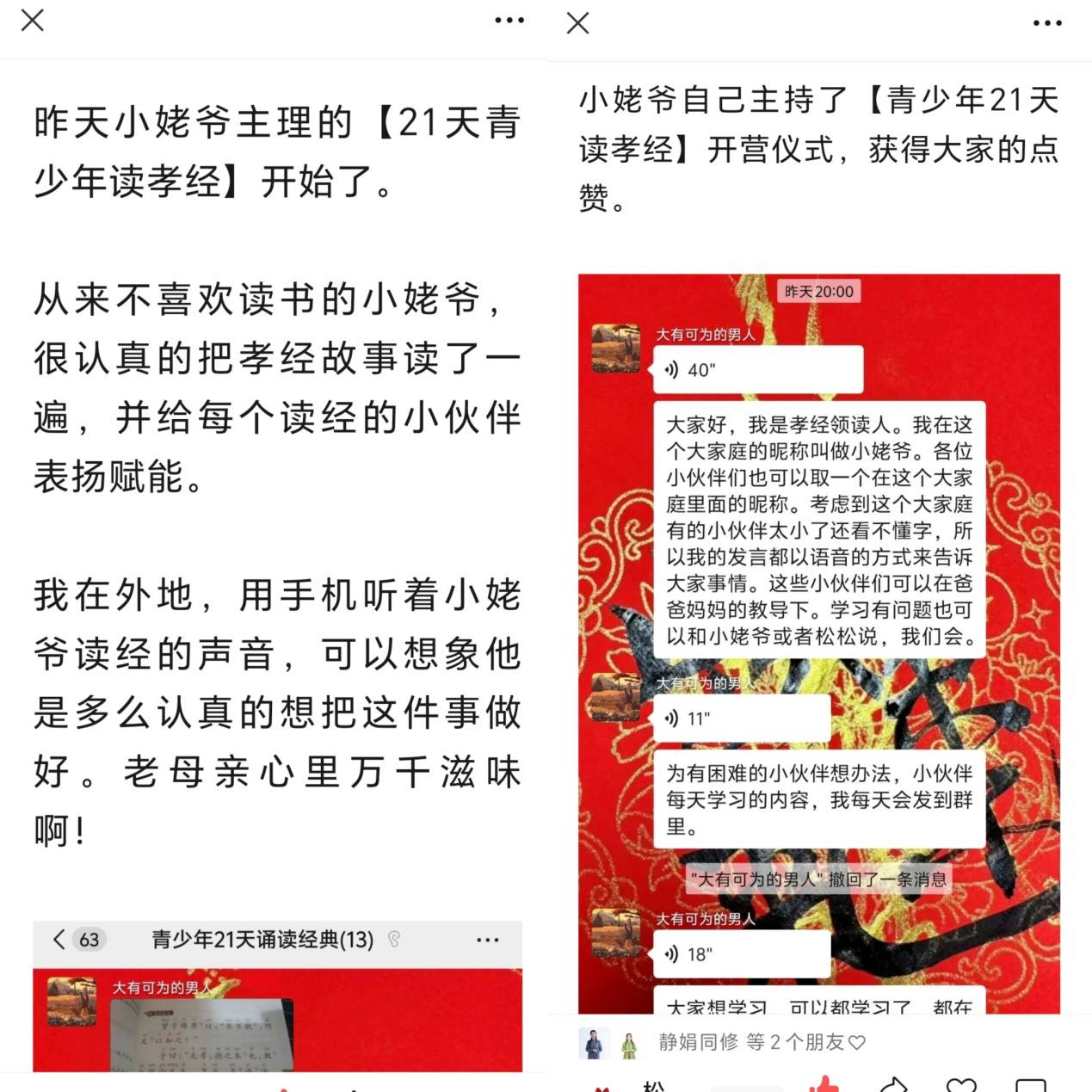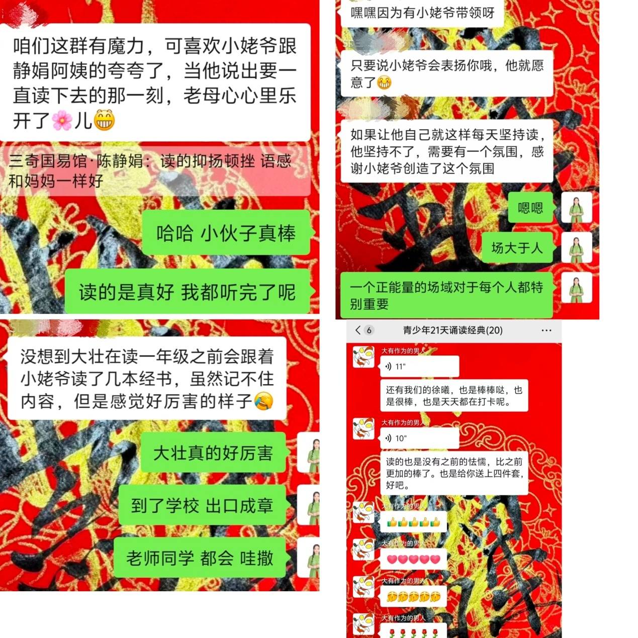 少年风华 云耕细作 当我们期待一位正值青春期的孩子能够敞开心扉时,往往要从他做得最为得心应手的一件事说起—— 2025年3月26日晚上八点半,南京市孝陵卫初级中学二年级学生李宸萌第一次在手机上主持一场线上读诵传统国学经典的公益活动。他用稚嫩又稳重的声音举行了一场幽默风趣的开营仪式,欢迎第一批来自全国各地年龄跨越幼儿园、小学和初中的5名成员,组成一个为期21天的“新家庭”,共同学习儒家经典《孝经》。 “子曰:夫孝,德之本也,教之所由生也。”…… 琅琅读书声通过手机电波从四面八方汇聚而来,形成一场跨越时空的对话。从那个专注又忙碌的夜晚开始,李宸萌每晚八点半都会投入一个小时的时间,带领线上成员朗读《孝经》原文、交流释义,鼓励坚持打卡,第一时间提供积极的情绪反馈,将这个公益项目热热闹闹地运营了起来。 第一轮21天不间断读经成功闭环,三奇国易馆旗下“新家庭研修”版块的主体项目——“青少年读经训练营”就这样开启了。 继读完《孝经》之后,共读书目又拓展到《论语》、《增广贤文》、《道德经》等经典内容;线上成员从5名逐渐扩大至上百名,不少家长也加入进来跟随伴读。 在持续耕耘半年之后,2025年9月13日,李宸萌第一次以南京三奇国易馆“青少年读经训练营”主理人的身份受邀参加南京国学文化公益平台金陵芸空间的“智问会客厅”,感受中华优秀传统文化的智慧和力量,继续参与到国学经典的传承和传播中来。他也是这场活动中年龄最小的成员,受到大家的赞赏和欢迎。 (第三排左3为三奇国易馆“青少年读经训练营”主理人李宸萌) 雨露雷霆 俱是天恩 看到李宸萌精进自律的状态,谁能想到,这个开始在南京传统文化公益圈崭露头角的少年,几年前曾一直是父母眼中的“问题孩子”——不仅学习成绩不尽如人意,还时常请假辍学在家,沉迷游戏,作息混乱。整个家庭因为他的状态而陷入到无休止的争吵和暴力冷战中,仿佛跌入深渊。 “那是一段非常压抑的日子,到现在我依然还要面对学习压力,因为我在小学阶段就没有跟上内卷的步伐,很多科目都是第一次学,有畏难情绪,成绩就很难上去。”李宸萌坦然回应关于他学习成绩落后的问题。 而在早期的养育过程中,李宸萌的母亲——南京三奇国易馆馆主陈静娟也自述,当年的自己正处在事业发展的忙碌期,并没有意识到孩子刚入学意味着什么,只一味地把他交给学校。 “我们是自然而然又自以为是地当着孩子的父母,觉得已经把他送到了当地很好的小学,应该没问题。结果一看到他学习成绩这么差,就非常有情绪,根本没去理解他究竟遇到了哪些困难和问题。” 学习上的挫败感让李宸萌难以适应学校的各种要求和节奏,慢慢地滑入到所谓班级“差生”的行列。回到家,他又要思考如何面对父母的批评和指责。 “其实我的内心也一直希望自己是厉害的,打游戏也要打得好,出去玩能够呼朋唤友,或者是当局面一片混乱时,我就是那个一出手就能解决问题的人。” 显然,这是一个正处在成长冲突期、内心火热有着英雄情结却又无处安放的孩子。现实社会里的教育规制和体系,在侵蚀和瓦解他的自信,而父母简单粗暴的回应却无法托举他的滑落。 “有一次,我家先生和李宸萌发生了非常剧烈的争吵,他把他的东西几乎都扔了,告诫他以后再也不想管他了,随他去!然后,他们在一个屋檐下有将近七个多月没有讲话,形同陌路。”陈静娟回述着那个阶段家里发生的暴风雨般的冲击,内耗的疲惫折磨着每一个人。这种情景显然不只是某一个家庭的风暴,而是当下所有被陷入教育内卷却又无力跟上节奏而被撕碎的家庭缩影。 一个十来岁的孩子,究竟怎么才能走上既适合自己又有价值感的幸福成长之路呢?子女不安、家业不稳,何以归宿?痛定思痛,陈静娟毅然决定辞去正处于发展高峰期的高薪工作,转而投向传统文化、家庭教育、心理成长的学习中。她下定决心要改变整个家庭的风貌,进行一次全面的“新家庭研修”。 “当我的母亲辞职后,我也不理解她究竟要干什么,我怕她再继续天天盯着我学习,那就更完蛋了。”但是,令李宸萌没有想到的是,学习国学后的母亲竟然渐渐松弛了下来,他们的亲子关系在持续几年的暴风骤雨后,慢慢有了新迹象。 破局之光:“圣人处无为之事,行不言之教” “《道德经》里说‘行有不得,反求诸己’,这句话击中了我。我一直向外寻求解决方法,却从未向内审视自己。”辞职后的陈静娟经过各种探索,逐渐在国学经典里找到了希望。 她反思,家庭教育首先应该是家长的自我教育。 “圣人处无为之事,行不言之教”。 教育,是用“一棵树摇动另一棵树,一朵云推动另一朵云,一个灵魂唤醒另一个灵魂”。在一个健康的家庭生态里,如果父母自认为可以称为教育者,那一定需要以自身丰富的生命体验和充沛的能量去触动孩子的心灵。 “我后来发现我妈妈允许我学习不那么好了,我不想上学她就让我请假,我打游戏她也不反对,其实我并不喜欢这样,但也不知道自己能够干什么。”李宸萌依然迷茫,但他的苦闷终于得到了母亲的理解,他第一次被看见了。 陈静娟决定换一种方式带孩子。她尝试着把李宸萌带到自己学习的国学课堂上去,让他和更多在社会上经历过生存之战的成年人一起学习传统文化经典,从生命如何立足的根本之道上启发他的