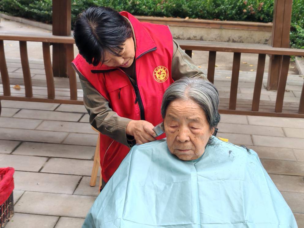 在活动现场的一角,杏花红志愿服务中心的志愿者们热情满满地为老年居民提供免费理发服务。他们手法娴熟,根据老人的喜好和脸型设计发型。从围布、梳理到修剪,每一个动作都充满关爱。“您看这个长度合适吗?”“大爷,给您稍微修一下鬓角,显得更精神!”志愿者们亲切的话语,让老人们倍感温暖。不一会儿,老人们原本凌乱的头发变得整齐利落,个个精神矍铄,脸上洋溢着幸福的笑容。