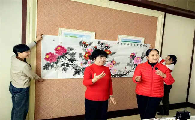 县关工委传统文化联络部戏曲指导团的骨干成员赵长凤、王润彩为大家奉献了精彩戏曲联唱,书画指导团的骨干成员钟京芬为大家展示了国色天香的书画作品,使得庆祝活动高潮迭起,欢乐气氛浓郁。