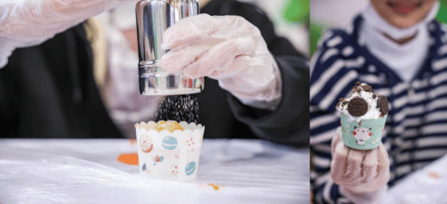 活动当天,来自亿滋中国的注册营养师结合在场小朋友的年龄特点,为孩子和家长们生动讲述“平衡膳食”、“份量控制”、“专心享用”等健康理念,并通过贴纸游戏让大家对“儿童平衡膳食宝塔”形成正确的理解。随后,亿滋的烘焙专家为孩子们展示制作橙子玛芬蛋糕;在员工志愿者和家长的协助下,孩子们认真完成每一个步骤,亲手制作了自己的杯子蛋糕,最后放上奥利奥迷你饼干作为点缀,在动手实践中收获成就感。