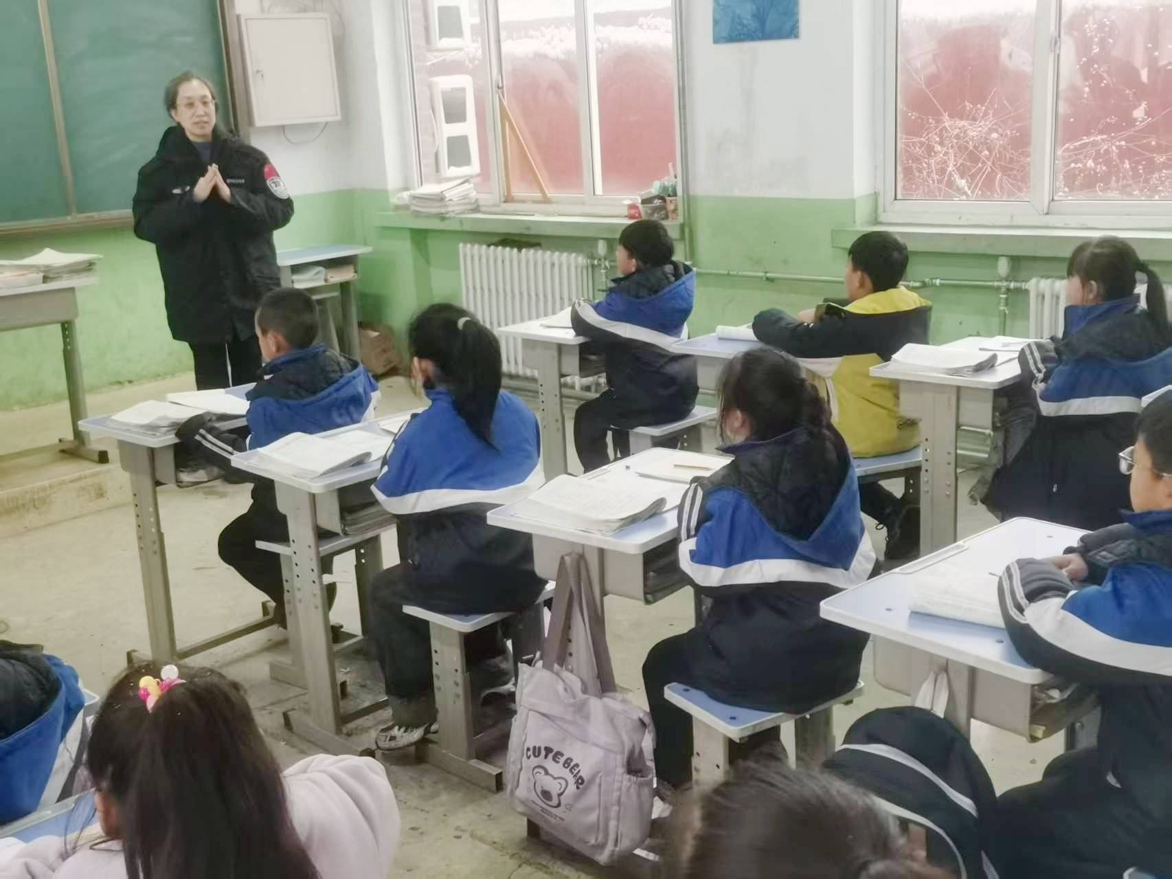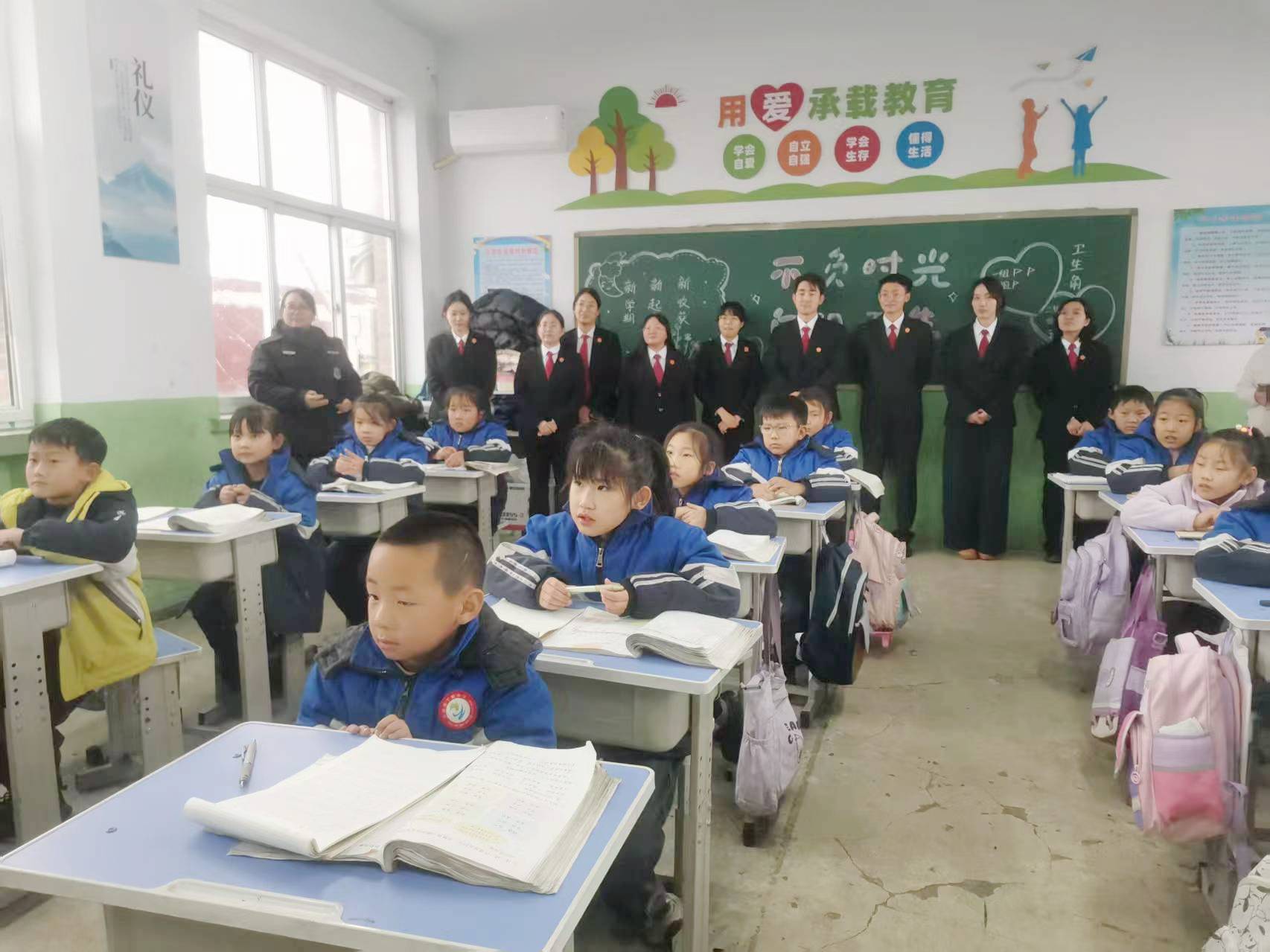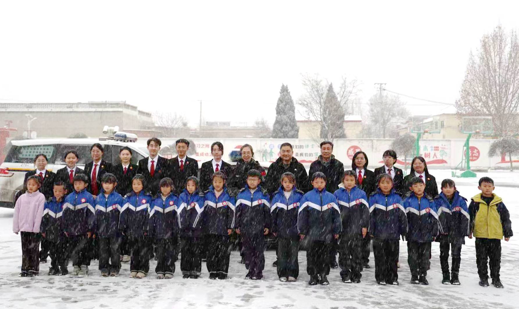 下解村是远近闻名的中国传统村落,国家级非物质文化遗产皮影戏之乡,河北省历史文化名村,法官和干警们在该村党支部书记任进生陪同下,冒着漫天大雪,走进村小学给小学生普及安全防范和反诈骗知识,给孩子们上了一堂生动的法治教育课。