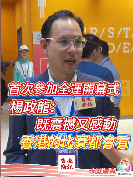 活动中,50位长者与50位青年义工连同20位集团义工,超过120位参加者使用回收材料做成的运动器材“激烈比拼”,用最接地气的方式呼应着“激情全运会 活力大湾区”的精神,也让人们看到了慈善与运动碰撞出的别样火花。 亲临全运,杨政龙的体育情怀 父辈的体育情怀,在杨政龙身上得到了传承。首次亲临全运会开幕式的他,刚踏入广东奥林匹克体育中心就被现场氛围深深打动。“既震撼又感动”,接受《香港商报》采访时,杨政龙的语气里满是真诚,坦言走进会场一圈、看过部分表演后,更期待后续的精彩呈现。 被问及观赛计划,杨政龙毫不含糊:“每个比赛都想看,会尽量出席所有香港队的比赛。”从沙滩排球到击剑,都在他的行程清单上,甚至还计划专程前往澳门观看乒乓球赛事。这份对赛事的热忱,除了个人对体育的喜爱之外,也包含着英皇集团对香港体育事业的持续关注。